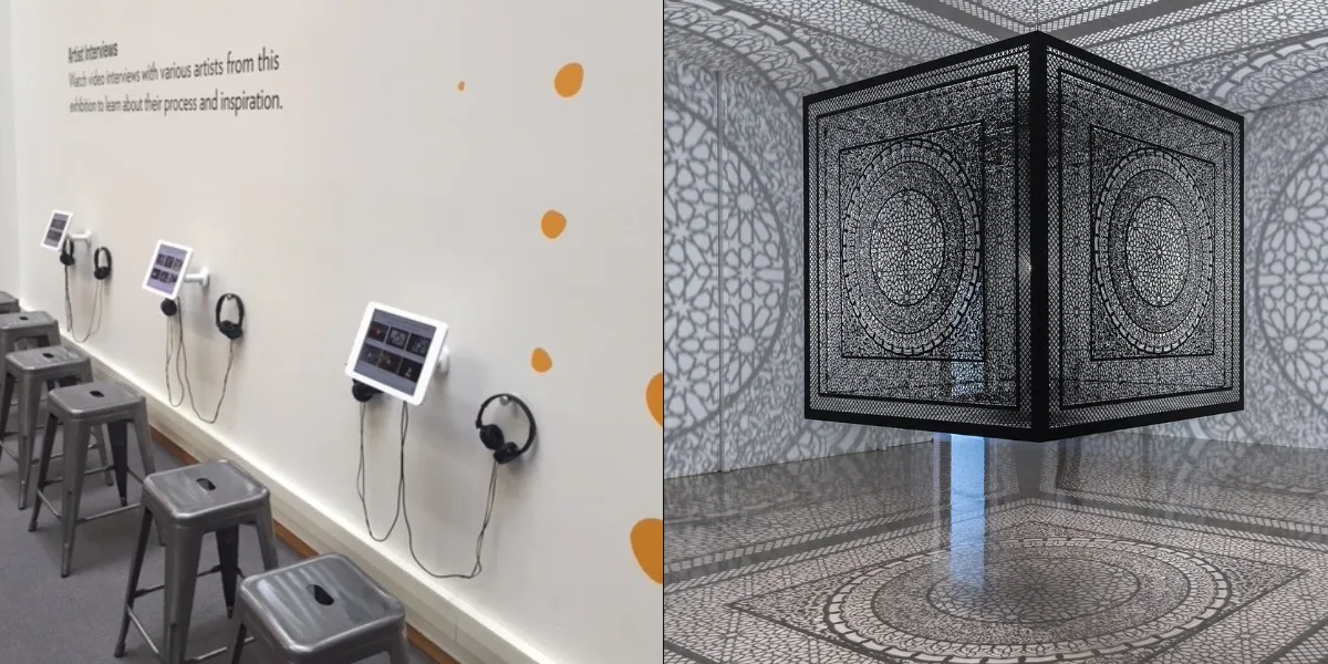 Based on this observation, the North Carolina Museum of Art decided to create a multimedia space within the exhibition You are here: Light, Color, and Sound Experiences to display video and audio content that complements the visit.